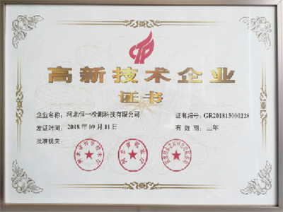 2018.9.11荣获河北省高新技术企业称号2019年